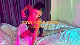 young cute thai babe rips lingerie stripping petite ass on bed
