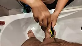 cute wife friend gives handjob challenge for sex