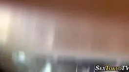 Oriental beauty with saggy natural tits caught masturbating then fucked hard till swallow