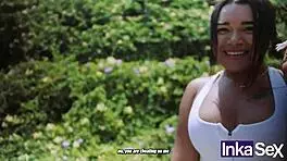 A beautiful Peruvian girl, Yenifer Chacon, gets caught in the forest. She sucks cock outdoors with passion.
