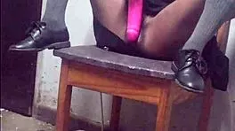 Hot Schoolgirl Vibes Tight Pussy on Chair While Stud Jerks Cock