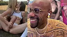 nympomaniac blonde seduces strangers for gangbang cum in mouth.