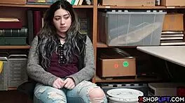 Caught shoplifting, teen 18+ faces stripsearch in mall backroom with big cock punishment.