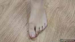 dirty nerd brunette gives barefoot footjob joi cum on soles