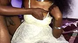 slender ebony thot with lipstick masturbates her pussy, showing big nipples and natural tits before squirting.