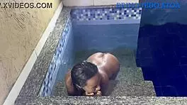 skinny latina enjoys kitchen fun by the pool 11:21