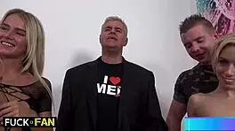 Aisha licks Nesty's pussy while the blonde slurps Chad's balls. 10:09