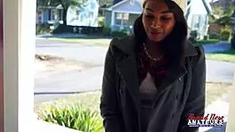 Skylar gets on the couch to let him put that fast toy on her clit