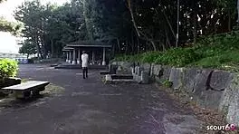 Skinny Japanese teen gives blowjob to stranger in car during porn casting 😏