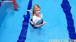 Horny SKINNY SLUT Ashlee Rose in Wet UNDERWATER DRESS Tease