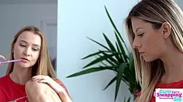 Stepsisters Rebecca Volpetti and Ivi Rein swap cum in wild action.