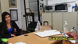 so this nubian teen queen gives a sloppy pov blowjob during her casting interview, all oiled up and interracial