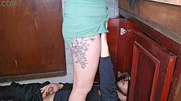 Wife left, short maid grabbed my dick and inserted it inside her at home.