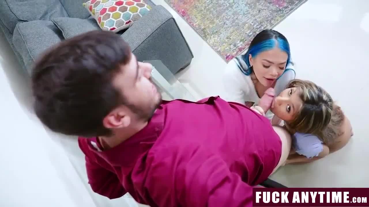 Tiny 18+ teen gets intense creampie from guy in wild threesome