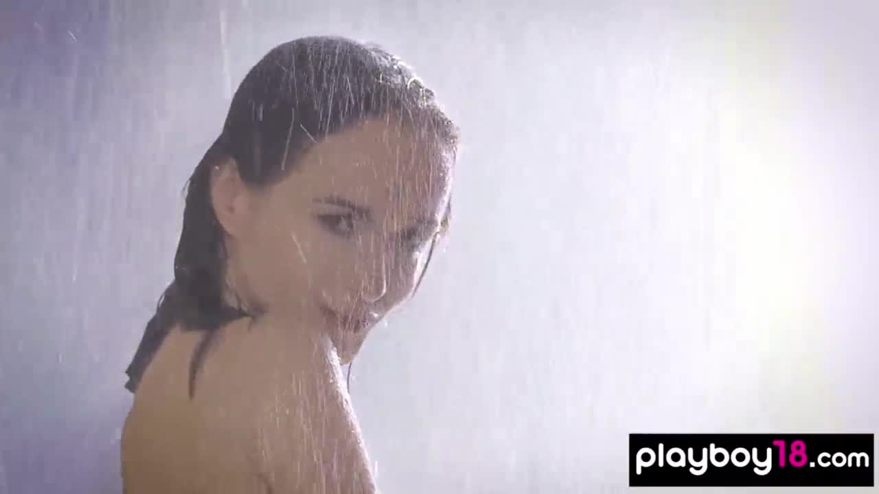 Petite blonde teen competes in oily massage game