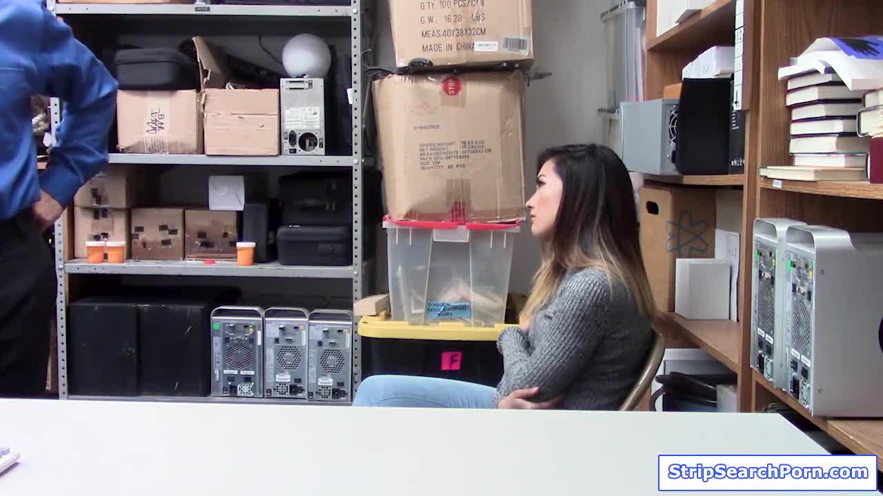 Security guard rips clothes off teen shoplifter for rough office cock sucking